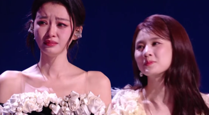 本来主持人想让孙怡公布最终结果,可张慧雯却主动凑过来了,一边的孙怡已经哭得眼泪汪汪了,张慧雯却是一副憋笑的表情。