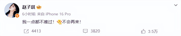看得出来,赵子琪对这个舞台已经没什么留恋了,被淘汰后表示“我一点都不难过,不会再来”。