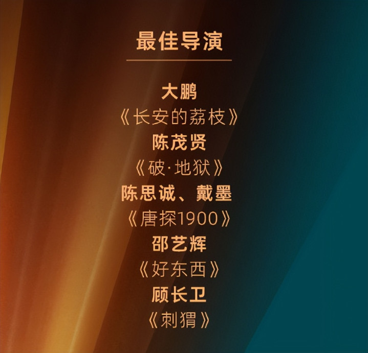 最佳导演的提名有大鹏(《长安的荔枝》)、陈思诚和戴墨(《唐探1900》)等人。