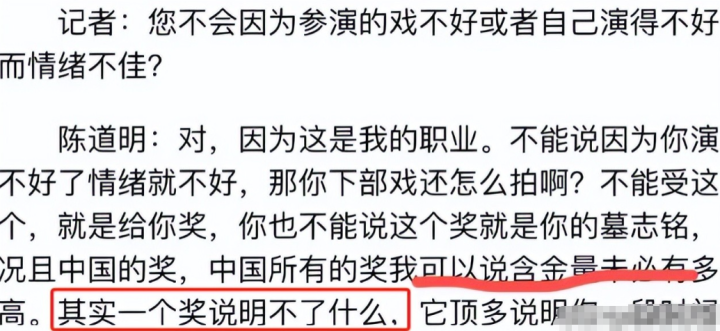 如此看来,还是陈道明看得清楚,早年间在采访的时候他就表示:“中国所有的奖项,我可以说含金量未必有多高,其实一个奖说明不了什么。”