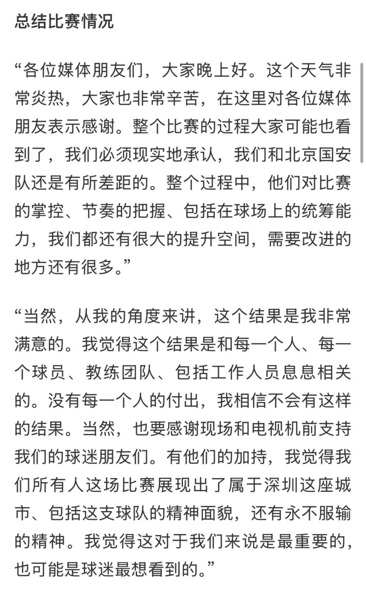 都说“换帅如换刀”,陈涛这位新帅上任后,果然立马就有效果了!那么,深圳队为什么能够战胜国安呢? 赛后陈涛接受采访,说的很多,也说的非常实在。